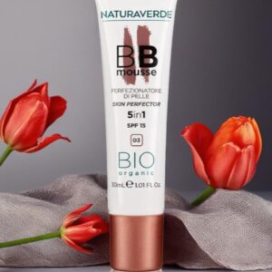 NATURA VERDE. N 03 BIO Make Up – BB Mousse Skin Perfector 5 in1, Beauty Balm Mousse Viso con Aloe e Vitamina E, Mousse Idratante per Perfezionatore di Pelle 5 in 1, Protezione Solare SPF 15, 30ml,NO PARABENI e SILICONI PARABENS and SILICONES DERIVATI DEL PETROLIO PETROLEUM DERIVATIVES FRAGRANZE SINTETICHE SYNTHETIC FRAGRANCES COLORANTI SINTETICI SYNTHETIC COLOURS