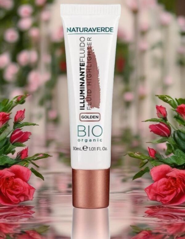 NATURA VERDE. ILLUMINANTE FLUIDO GOLDEN TEXTURE LEGGERA E LUMINOSA FACILE DA APPLICARE 100% ORIGINE NATURALE 89,8% INGREDIENTI BIOLOGICI NO PARABENI MADE IN ITALY 30 ML