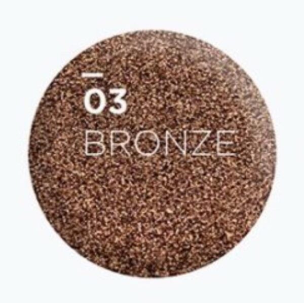 NATURA VERDE. Ombretto n 03 BRONZE alta pigmentazione- lunga tenuta- texture setosa 100% ingredienti di origine naturali. 11- 13,5% di ingredienti biologici.NON CONTIENE NICHEL. CON MATERIE PRIME PROVENINENTI DA AGRICOLTURA BIOLOGICA. DERMATOLOGICAMENTE TESTATO e con profumi di origine naturali. Paking realizzato con materiale riciclato.