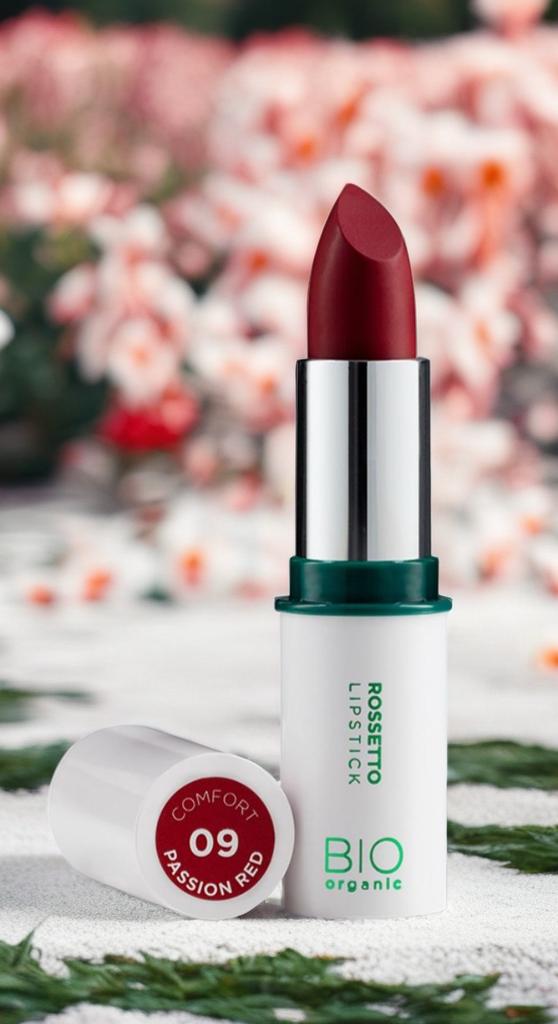 NATURA VERDE. ROSSETTO 09 PASSION RED ULTRA COMFORT COLORE PIENO ED INTENSO IDRATANTE E NUTRIENTE. 100% INGREDIENTI DI ORIGNINE NATURALE DI CUI 48,47% DI INGREDIENTI BIOLOFICI NO PARABENI MADE IN ITALY